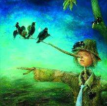 Beim Malen versuche ich, Bedeutungen und Muster einzuflechten, die allen Menschen auf der Erde bekannt sind. Dazu gehören z. B. Brunnen, Labyrinths, Türme, Vogelscheuchen, alte und lebende Bäume, Geheimtüren und Schlüssel zu Schätzen und Geheimnissen!