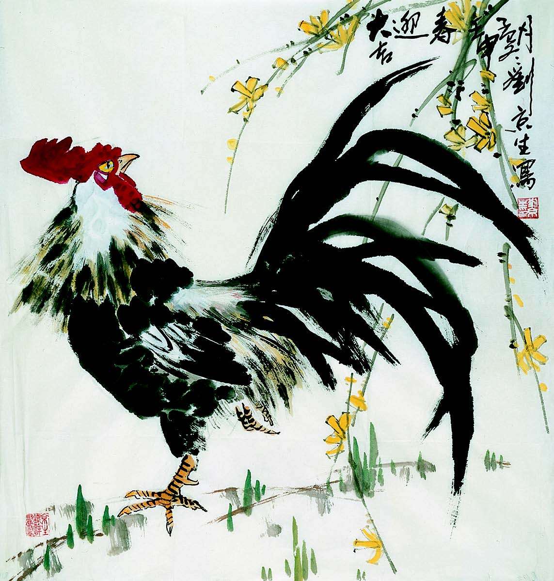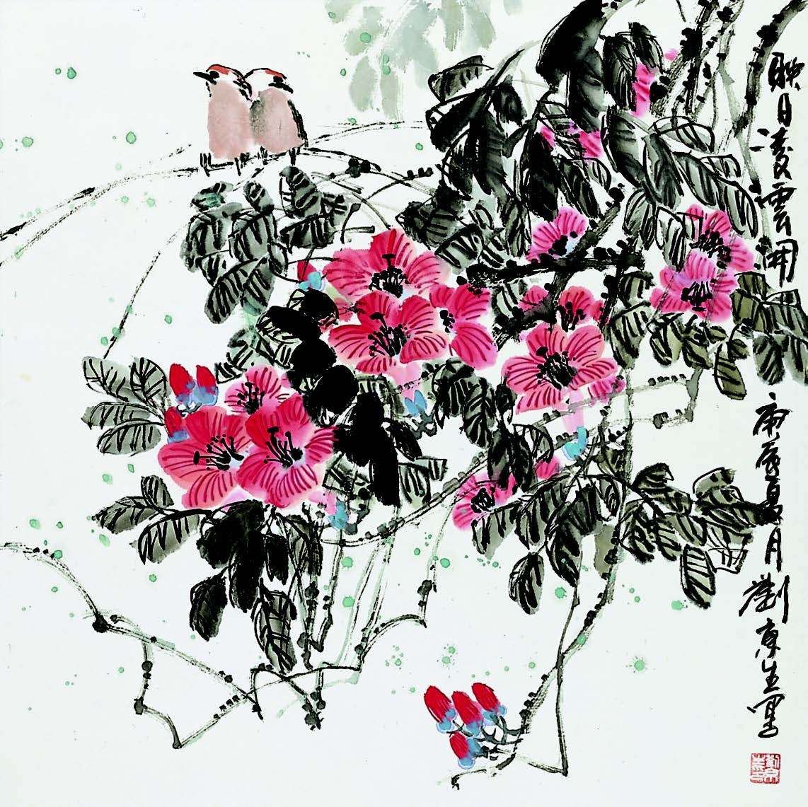 Jingsheng Liu beherrscht die chinesische Kalligraphie und jenen Stil der traditionellen chinesischen Malerei, der eine Pinselführung ohne Berücksichtigung von Details erlaubt. Seine Federführung ist schlicht, schön, gesetzt und zugleich kreativ. Er bevorzugt Motive aus der Tierwelt.