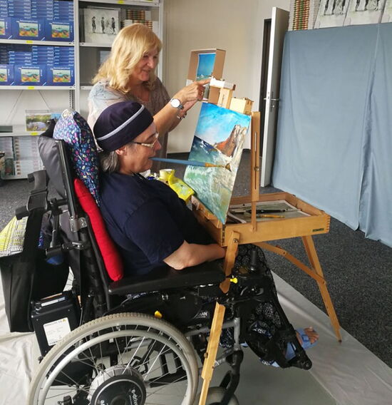 Drei Tage im Zeichen der Kunst: Beim zweiten Kurzmalworkshop waren der deutsche Mundmaler Lars Höllerer und die Schweizer Mundmalerin Bracha Fischel in Wädenswil dabei. Im Mittelpunkt des Workshops standen nicht nur das Erlernen von neuen Techniken und die Vermittlung von künstlerischen Inhalten. Auch der Austausch über neue Stillrichtungen und deren technische Umsetzung ist mit den beiden Mundmalern ausgiebig besprochen worden. Und nicht zuletzt sollten Kunstinteressierte die Gelegenheit haben, einen Einblick in die Arbeit der Mund- und Fussmaler zu gewinnen.