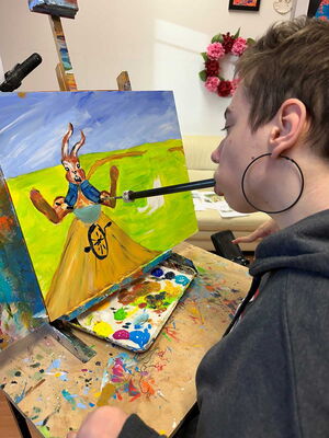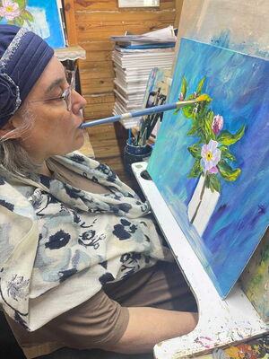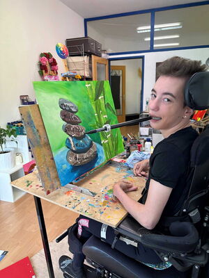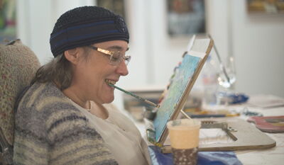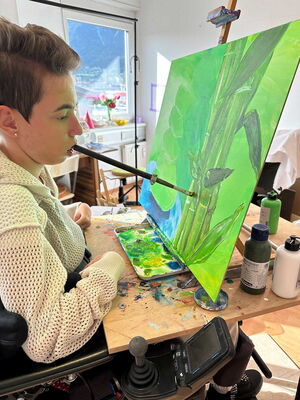 Die mund- oder fussmalenden Künstlerinnen und Künstler malen mit dem Pinsel im Mund oder zwischen den Zehen. Durch eine Behinderung von Geburt an, durch Krankheit oder einen Unfall ist es ihnen nicht möglich, ihre Hände zu gebrauchen. Um die soziale und wirtschaftliche Situation zu verbessern und mit eigenem Wirken aktiv zu werden, wurde 1959 der Kunstverlag Au, Genossenschaft der mund- oder fussmalenden Künstler (GMFK) gegründet.