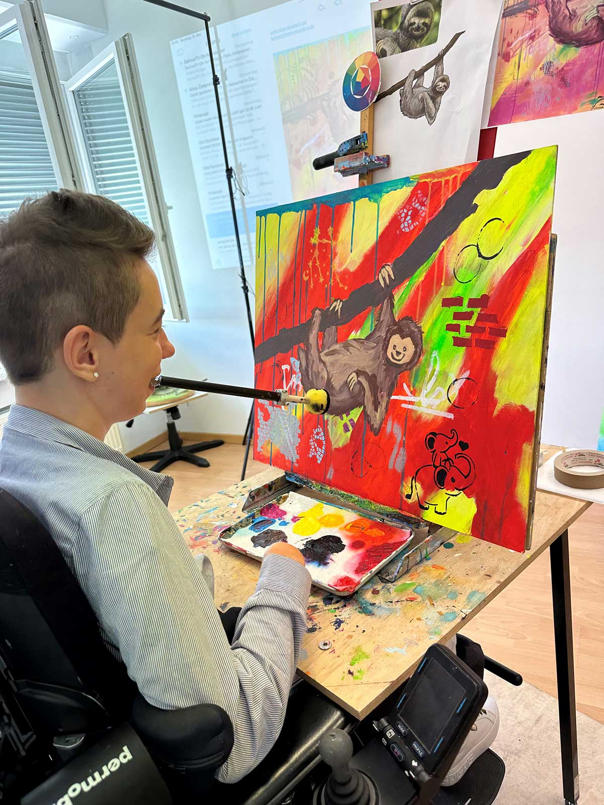 Exklusiv für ihre Kund*innen hat sich die GMFK etwas Besonderes einfallen lassen: Wer die Bilder der mund- und fussmalenden Künstler*innen auch auf seinem Computer-Bildschirm sehen möchte, kann sich die Monatsmotive des Kalenders für 2022 als Bildschirmschoner oder Hintergrundbild herunterladen. Die Zugangsdaten dafür gibt es per Mail an info@gmfk.ch.