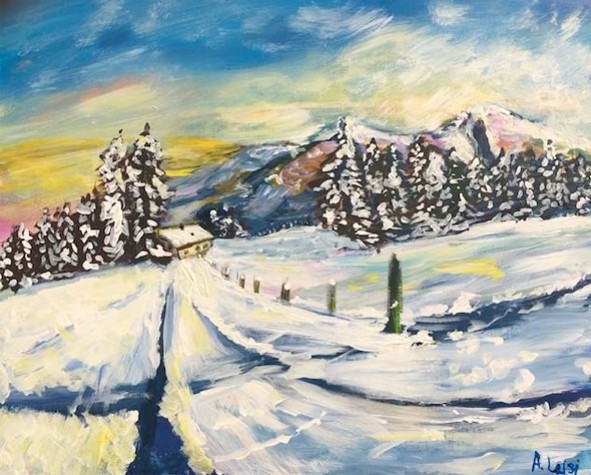 En accord avec la saison au début de l'atelier, la responsable du cours, Editha Tarantino, a choisi avec les artistes un « motif hivernal » typique, qui a ensuite déterminé pendant trois jours le quotidien artistique des peintres de la bouche Bracha Fischel, Lea Otter, Antoine Leisi et Lars Höllerer.